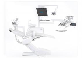 Unit stomatologiczny Diplomat Model Pro 500 może występować w wersji zawieszonej na fotelu stomatologicznym z górnym bądź z dolnym prowadzeniem rękawów na panelu lekarza.
